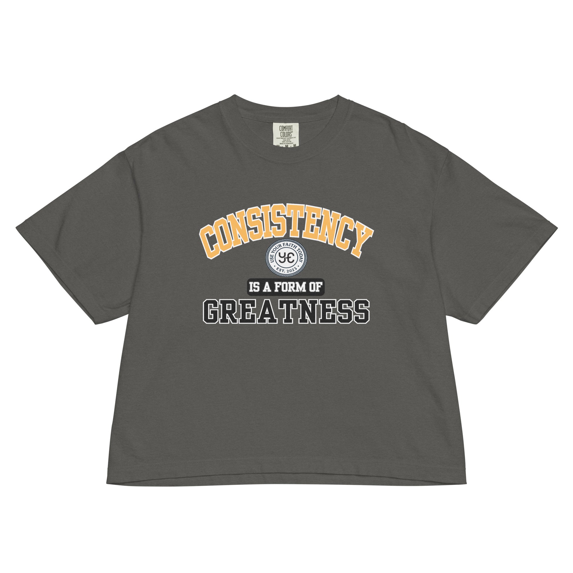 The "Consistency U." Women's Box Tee is crafted for those who understand that steady effort leads to lasting success. Featuring the inspiring message "Consistency Is A Form of Greatness," this tee combines motivational style with a comfortable, boxy fit tailored for everyday wear. Its design encourages focus and perseverance, making it a smart choice for women who value dedication in all aspects of life.